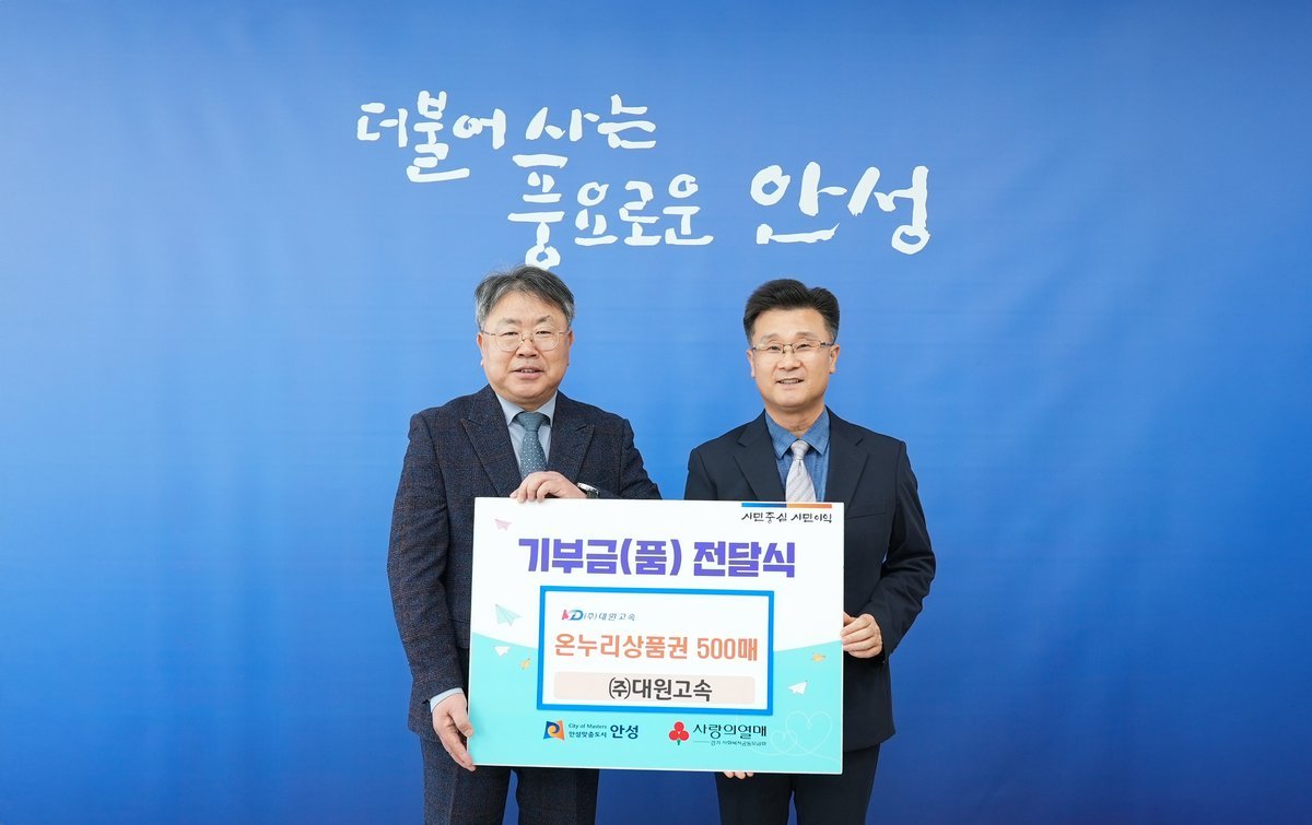대원고속, 안성시에 온누리상품권 500매 전달 (안성시 제공)