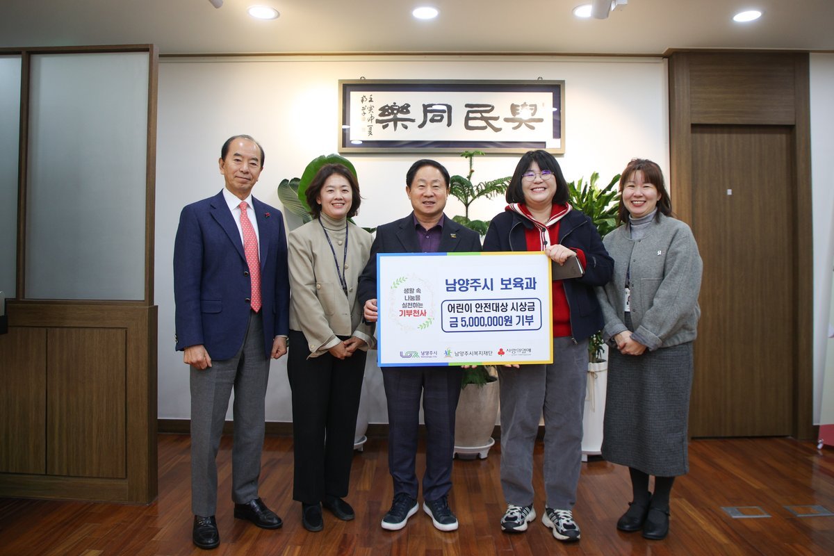 [금요저널] 남양주시는 5일 시장 집무실에서 '제15회 어린이 안전대상'대통령상 수상으로 받은 시상금 500만원을 관내 아동 복지사업에 활용하기 위해 남양주시복지재단에 지정 기부하는 전달식을 열었다.