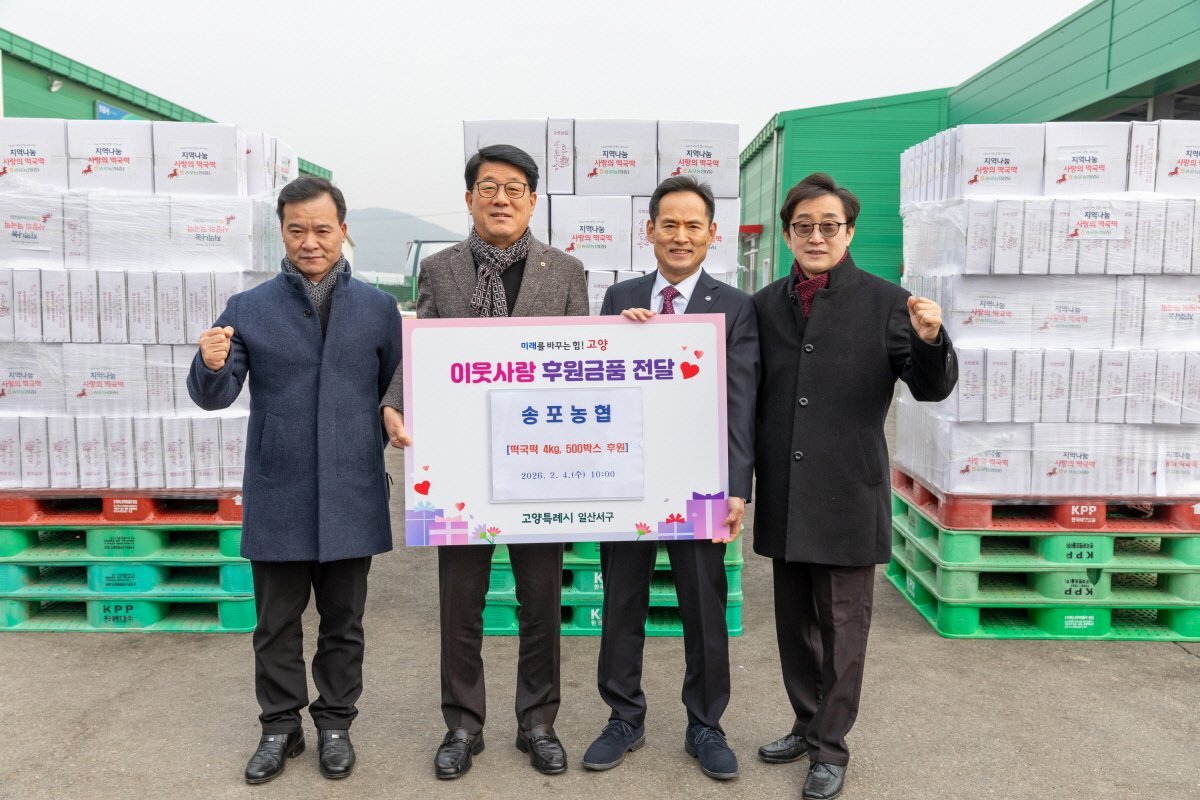 [금요저널] 고양특례시 일산서구는 지난 4일 송포농협과 설 명절맞이 ‘사랑의 떡국떡’전달식을 열고 떡 500박스를 전달받았다고 5일 밝혔다.