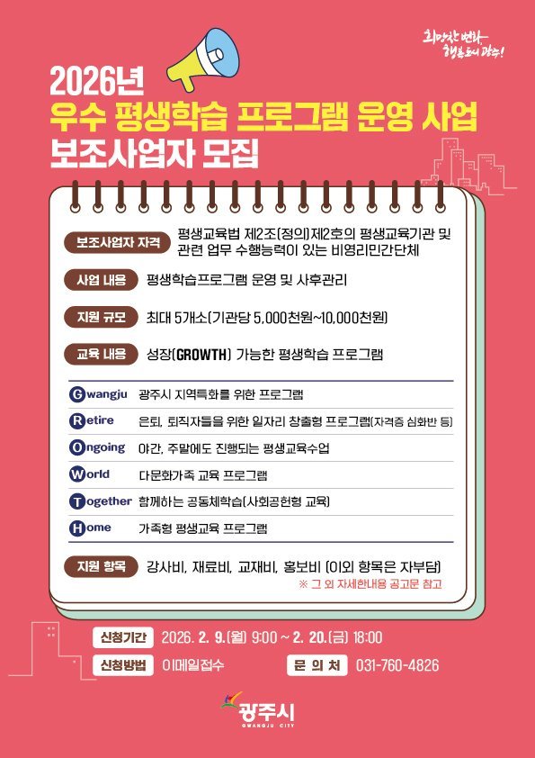 광주시 평생학습 프로그램 수행기관 공개모집 3 광주시 제공