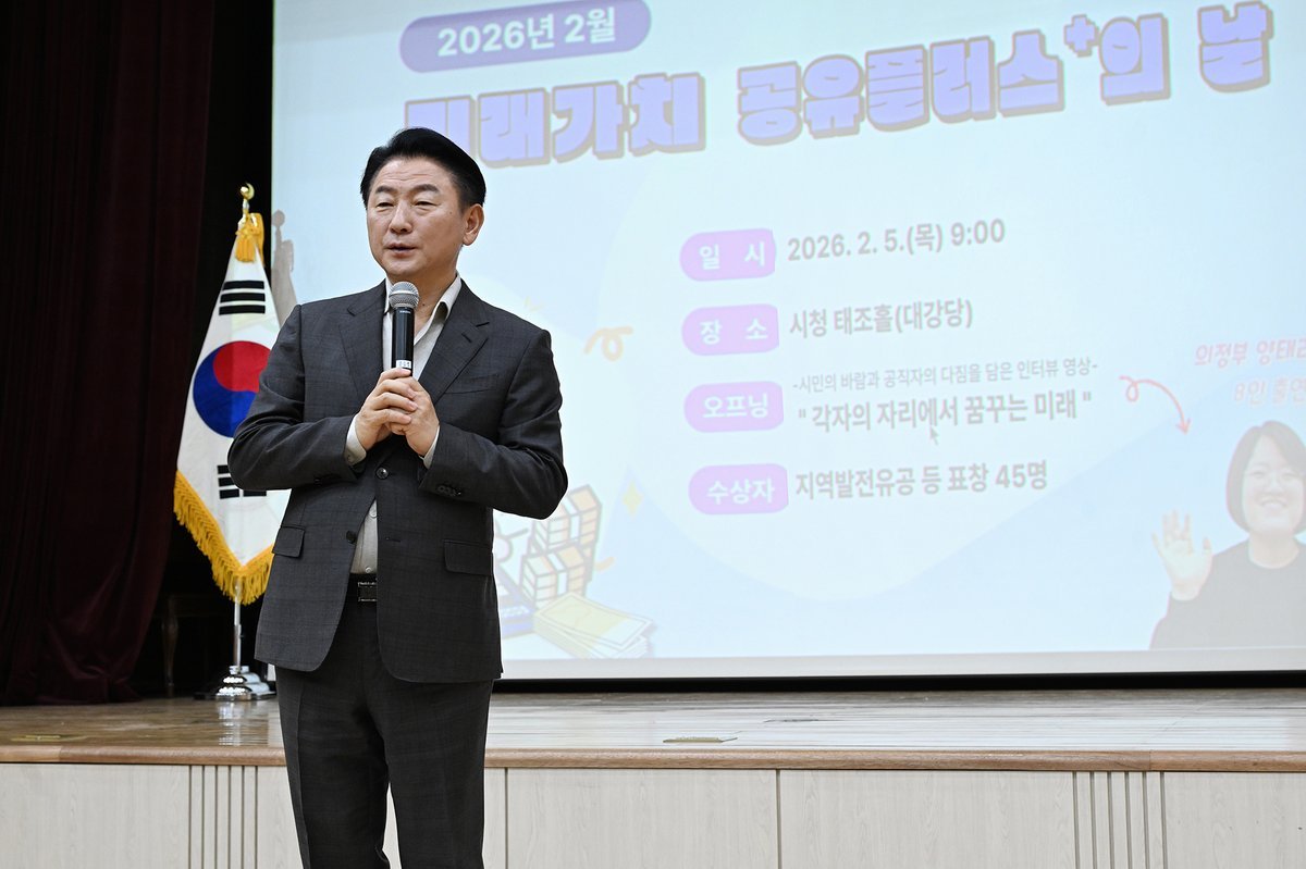[금요저널] 의정부시는 2월 5일 시청 태조홀에서 시민과 공무원 등 150여명이 참석한 가운데 2026년 새해 첫 ‘미래가치 공유플러스 의 날’을 개최했다.