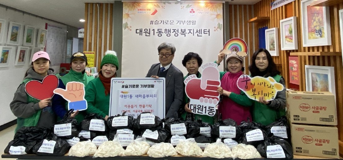심인숙 대원1동 새마을부녀회장은 “작은 정성이지만 설 명절을 맞아 이웃들이 따뜻한 떡국 한 그릇과 함께 온기 있는 겨울을 보내시길 바라는 마음으로 준비했다”며 “앞으로도 지역사회와 함께하는 나눔 활동을 지속적으로 이어가겠다”고 말했다.