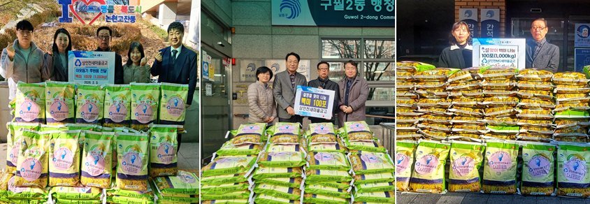 상인천새마을금고는 설을 맞아 회원과 지역 주민 등이 정성을 모아 논현고잔동, 구월2동, 간석2동 행정복지센터에 각각 쌀 10kg 100포씩을 기탁했다.