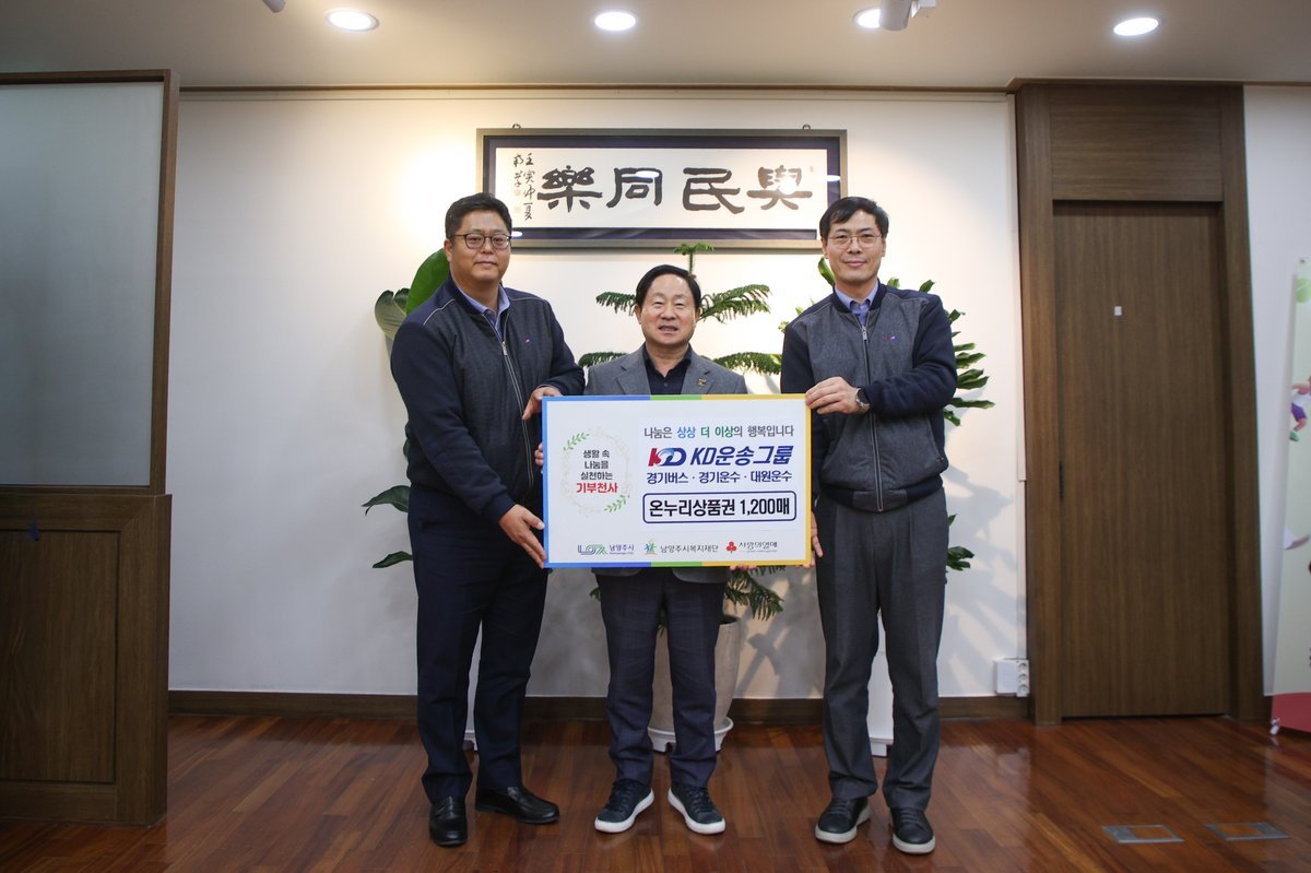 주광덕 남양주시장은 "매년 명절마다 사회공헌 정신을 실천해 주시는 KD운송그룹에 깊이 감사드린다"며 "기부해 주신 정성이 시민들에게 큰 위로와 희망이 될 수 있도록 시에서도 최선을 다하겠다"고 전했다.
