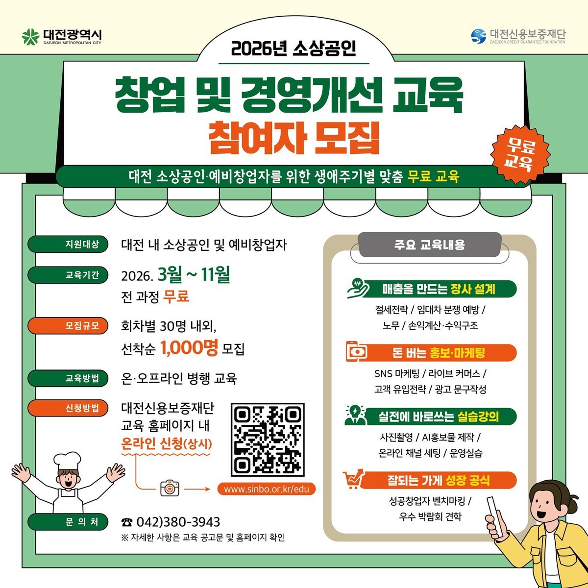 [금요저널] 대전시는 예비창업자와 소상공인의 경영 역량 강화를 위해 ‘2026년 창업 및 경영개선 교육’참여자를 모집한다.