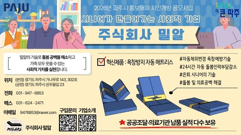 파주시는 앞으로도 홍보매체 시민개방 사업을 통해 공익성과 사회적 책임을 갖춘 단체를 지속적으로 발굴·지원하며 지역사회와 상생하는 홍보 정책을 이어갈 계획이다.