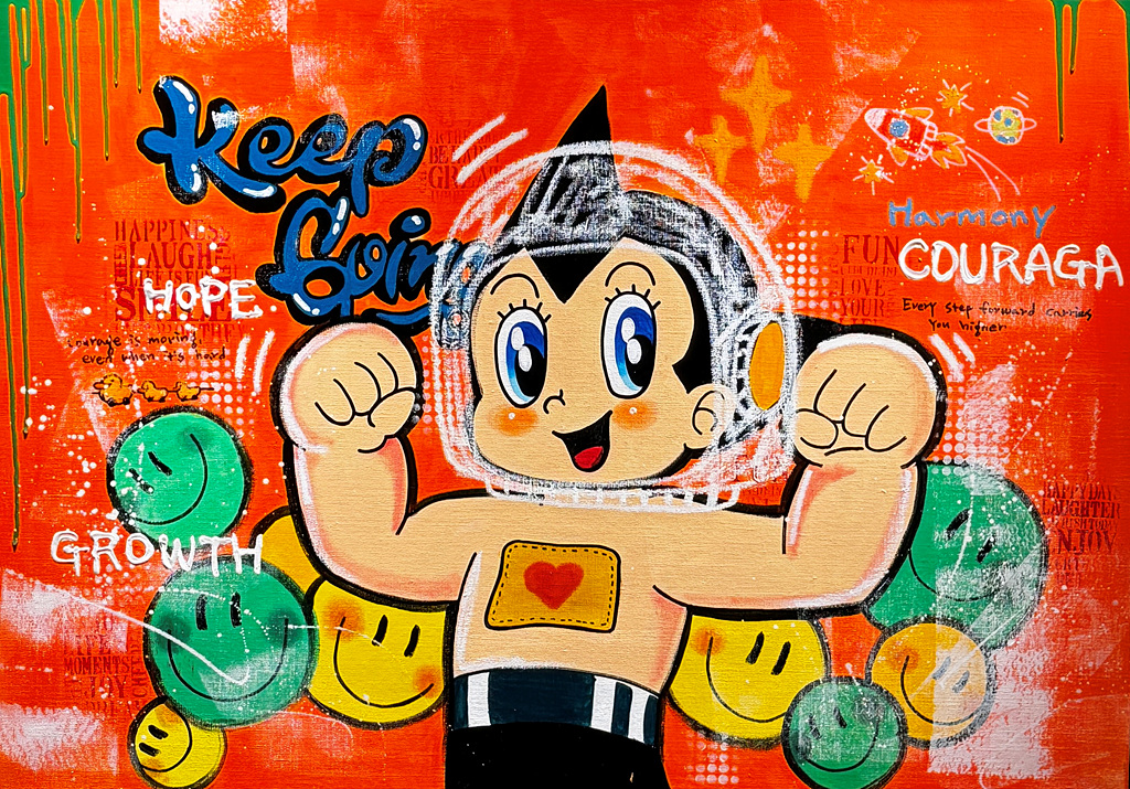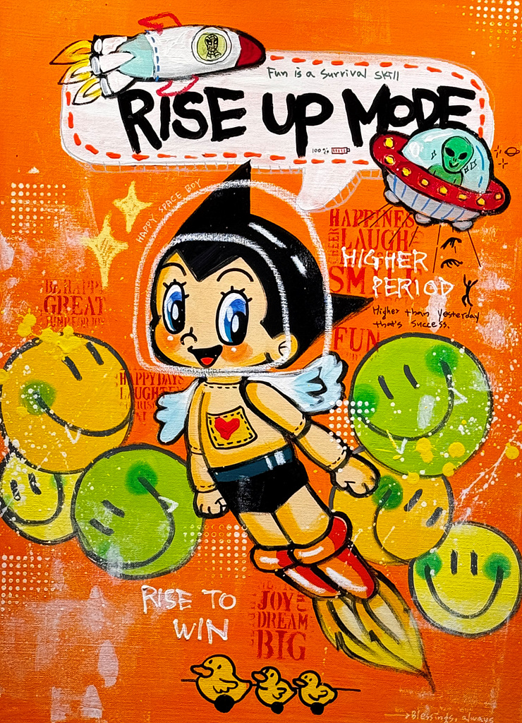 작가는 자신이 좋아하는 캐릭터를 중심으로 일상의 무게 속에서도 힘과 용기를 건네는 그림을 그린다. 그의 작품 속 캐릭터들은 때로는 유쾌하고, 때로는 삐딱하지만 언제나 즐거운 상태로 삶을 살아가려는 의도를 담고 있다. 이는 작가가 삶을 대하는 방식이자 관람자에게 전하고 싶은 조용한 응원의 언어다.