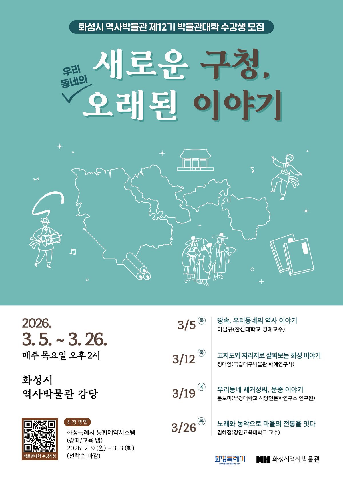 강의는 화성시 역사박물관 1층 강당에서 진행되며 지역 주민을 비롯해 역사와 문화에 관심 있는 성인이면 누구나 참여할 수 있다.