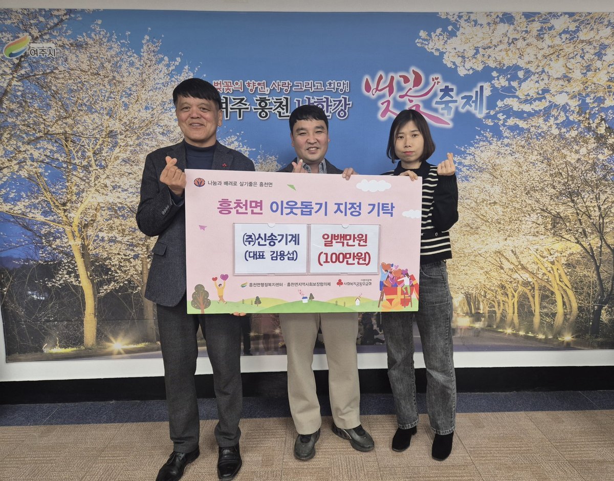 [금요저널] 신송기계는 설 명절을 앞두고 지역 내 어려운 이웃들이 따뜻한 명절을 보낼 수 있도록 이웃돕기 성금 100만원을 흥천면행정복지센터에 기탁했다.