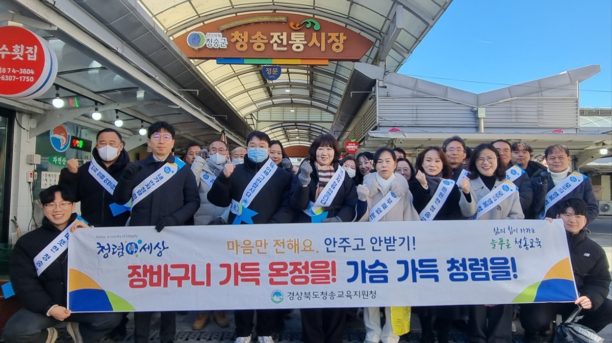 경상북도청송교육지원청(교육장 남정일)은 설 명절을 맞아 청렴한 공직문화 확산과 지역경제 활성화를 위해 9일(월) 청송전통시장에서 ‘청렴한 설 명절을 위한 전통시장 장보기 행사’를 실시했다.
