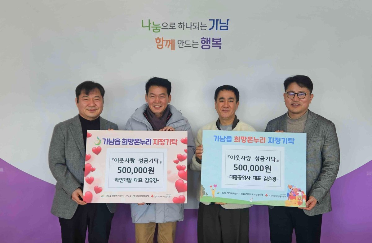 해인개발·대흥공업사, 가남읍에 이웃돕기 성금 기탁 및 정기후원 동참 (여주시 제공)