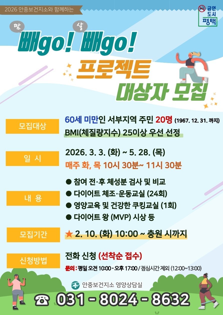 안중보건지소, 상반기 '빼go 빼go 프로젝트'참여자 모집 (평택시 제공)