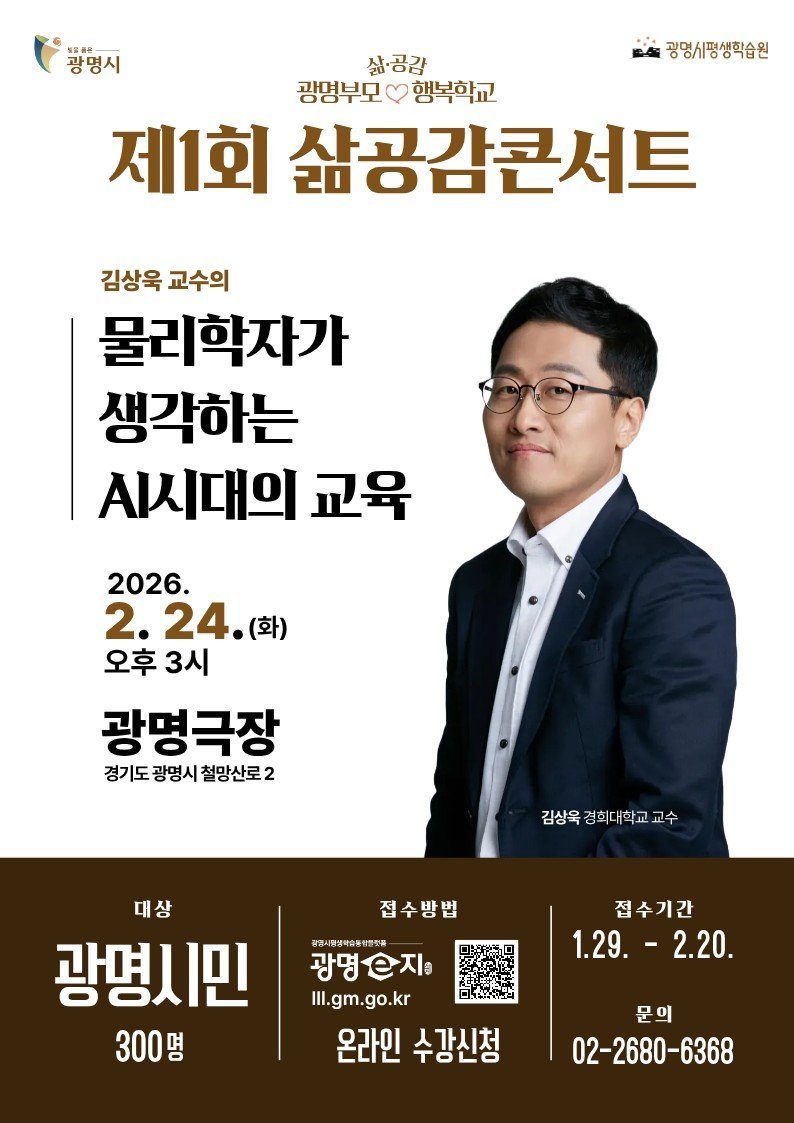 박승원 광명시장은 “AI 시대는 기술의 진보만큼이나 교육과 삶의 방식 전반을 다시 고민해야 하는 중요한 시기”며 “이번 콘서트가 시민들이 고민을 나누고 함께 성찰하는 소통의 장이 되길 바라며 앞으로도 시민의 행복과 관계 회복을 돕는 학습 프로그램을 꾸준히 확대하겠다”고 밝혔다.
