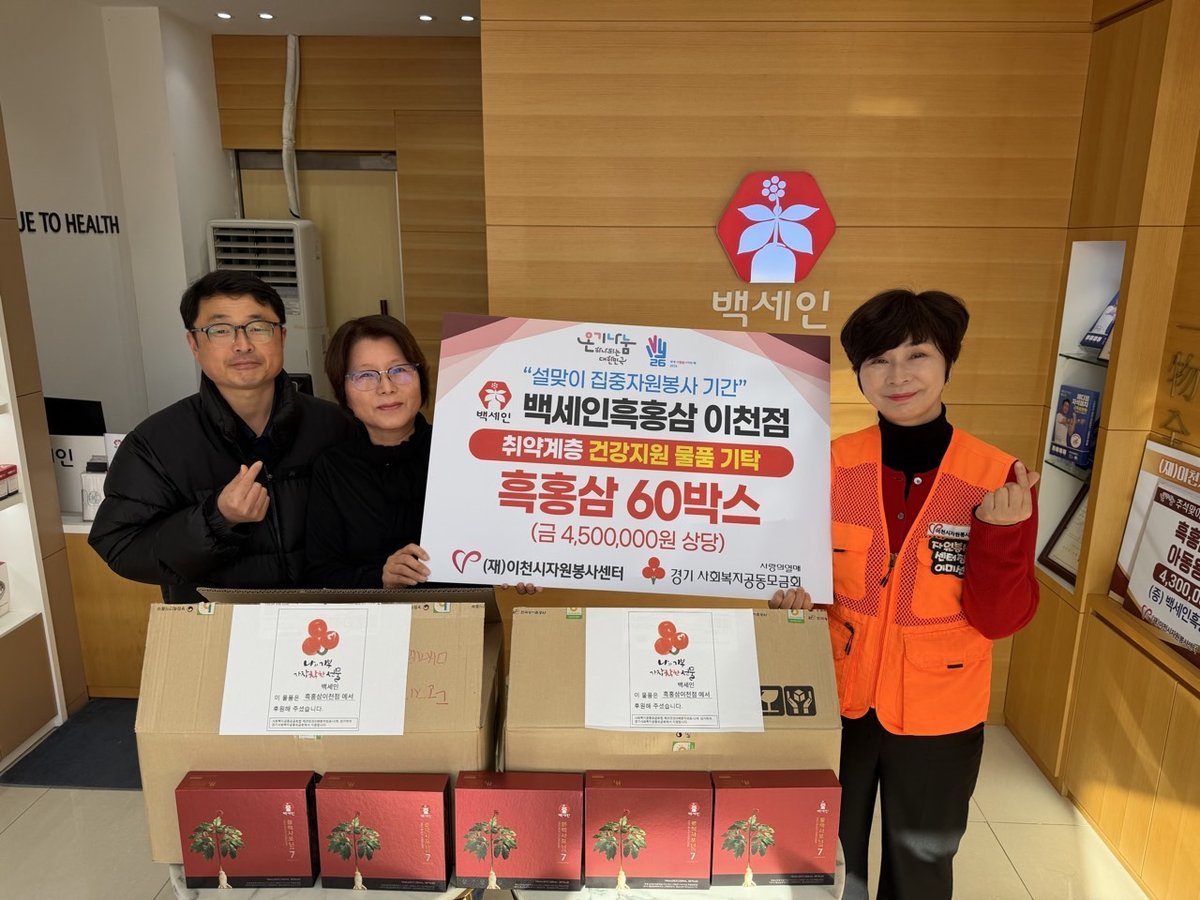 박철수·김연희 대표는 “명절을 앞두고 건강이 필요한 이웃들에게 조금이나마 힘이 되고자 이번 나눔을 준비했다”며 “흑홍삼과 함께 따뜻한 위로와 응원의 마음이 전해지길 바라며 앞으로도 지역사회의 일원으로서 나눔을 꾸준히 이어가겠다”고 전했다.