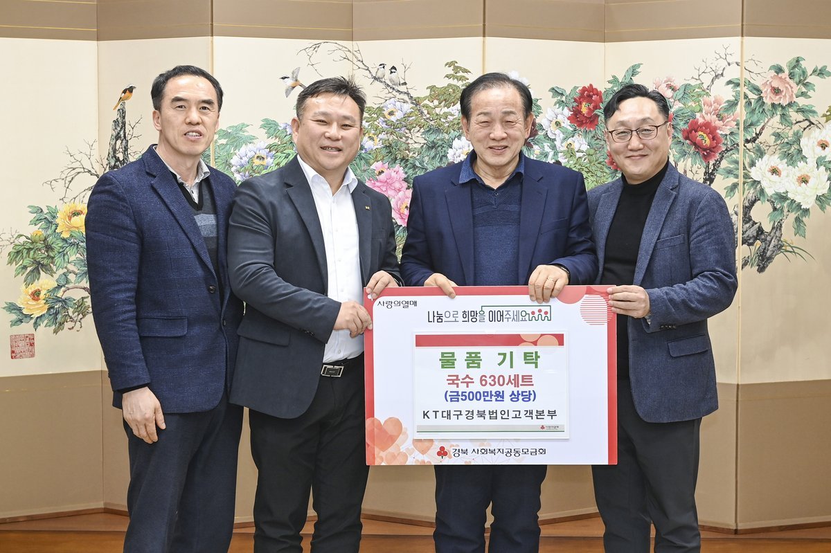 [금요저널] KT대구경북법인고객본부는 지난 9일 설을 맞아 지역사회 취약계층을 돕기 위해 국수 630세트를 문경시에 기탁했다.