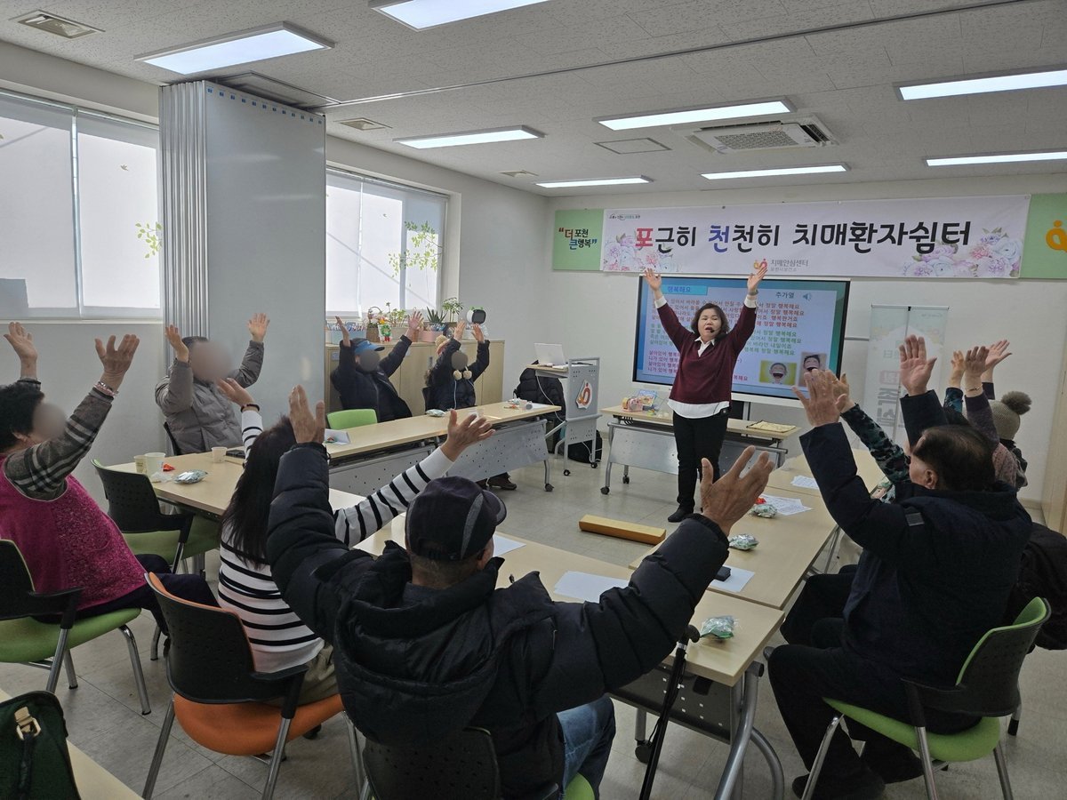 포천시 치매안심센터 2층 프로그램실에서 주 2회 운영되며 약 12명의 치매 환자가 인지 자극·운동·음악 활동 등 맞춤형 프로그램에 참여하고 있다.