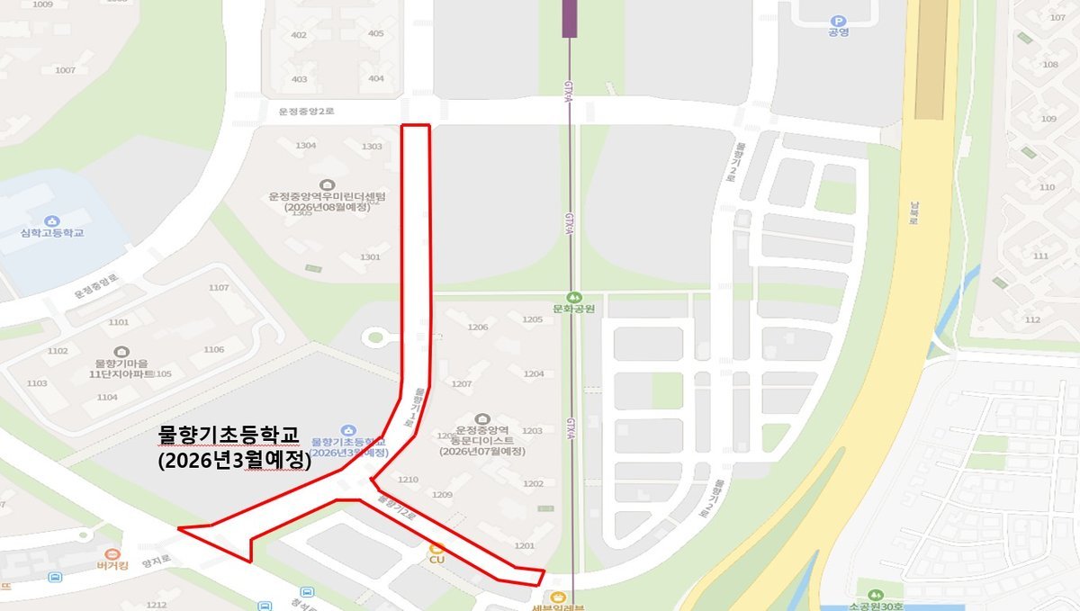 -2 파주시 운정 지역 초등학교 개교 맞아 불법 주정차 단속 개시 신규 단속 개시 구간 위치도 동패동 물향기초등학교 일원
