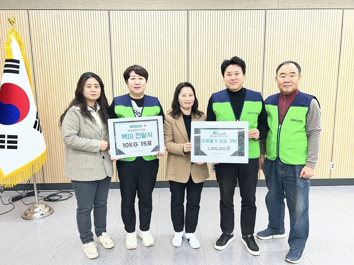 허명경 중앙동장은 “설을 맞아 소외된 이웃을 위해 기부하신 주민자치회장님을 비롯한 주민자치위원님들께 감사드린다”며 “이번 기부된 쌀과 성금은 복지 사각지대에 있는 이웃들에게 소중히 전달하겠다”고 감사를 전했다.