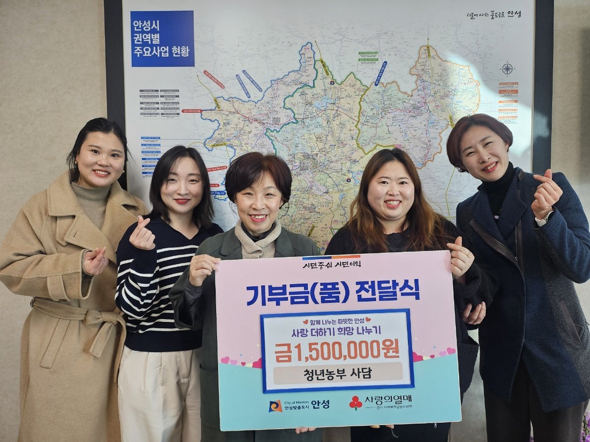 이번 기탁은 청년농부 사담이 운영한 ‘사담장’ 판매 수익금을 구성원들이 자발적으로 모아 마련한 것으로, 안성시 자립준비청년을 지원하고자 하는 뜻을 담아 추진됐다.