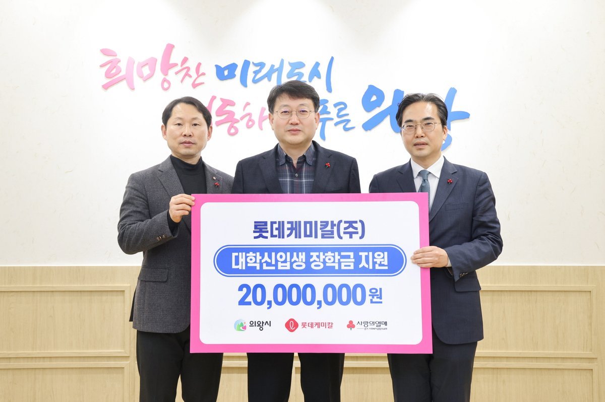 문정식 롯데케미칼 상무는 “임직원들과 함께하는 나눔으로 마련된 이번 장학금이 사회로 첫발을 내딛는 대학생들과 그 가족에게 작은 보탬이 되길 바란다”며“앞으로도 지역사회와 함께 성장하는 기업으로서 지속적인 나눔을 이어가겠다”고 밝혔다.