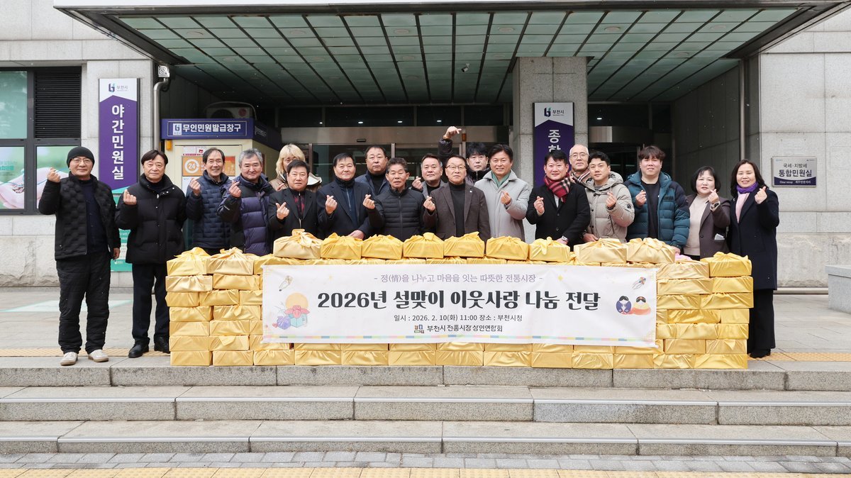 남일우 부천시전통시장상인연합회장은 “설 명절을 맞아 전통시장 상인들이 정성을 모아 준비한 나눔”이라며 “작은 정성이지만 어려운 이웃에게 따뜻한 위로가 되길 바란다. 앞으로도 지역과 함께하는 나눔을 계속 이어가겠다”고 말했다.