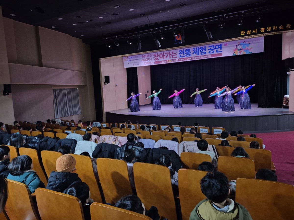 [금요저널] 안성시는 2월 10일 오전 10시 안성시평생학습관 2층 다목적실에서 열린 ‘찾아가는 전통 체험 공연 시즌 2 – 춤과 연희가 함께하는 무대’가 150여명의 시민이 함께한 가운데 큰 호응 속에 성황리에 마무리됐다고 밝혔다.
