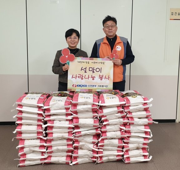 한국전력공사 인천지역본부 직원들은 매년 설 명절마다 지역 이웃에게 따뜻한 마음을 전하고자 임금의 일부를 모아 백미를 후원하는 등 꾸준한 나눔 활동을 이어오고 있다.