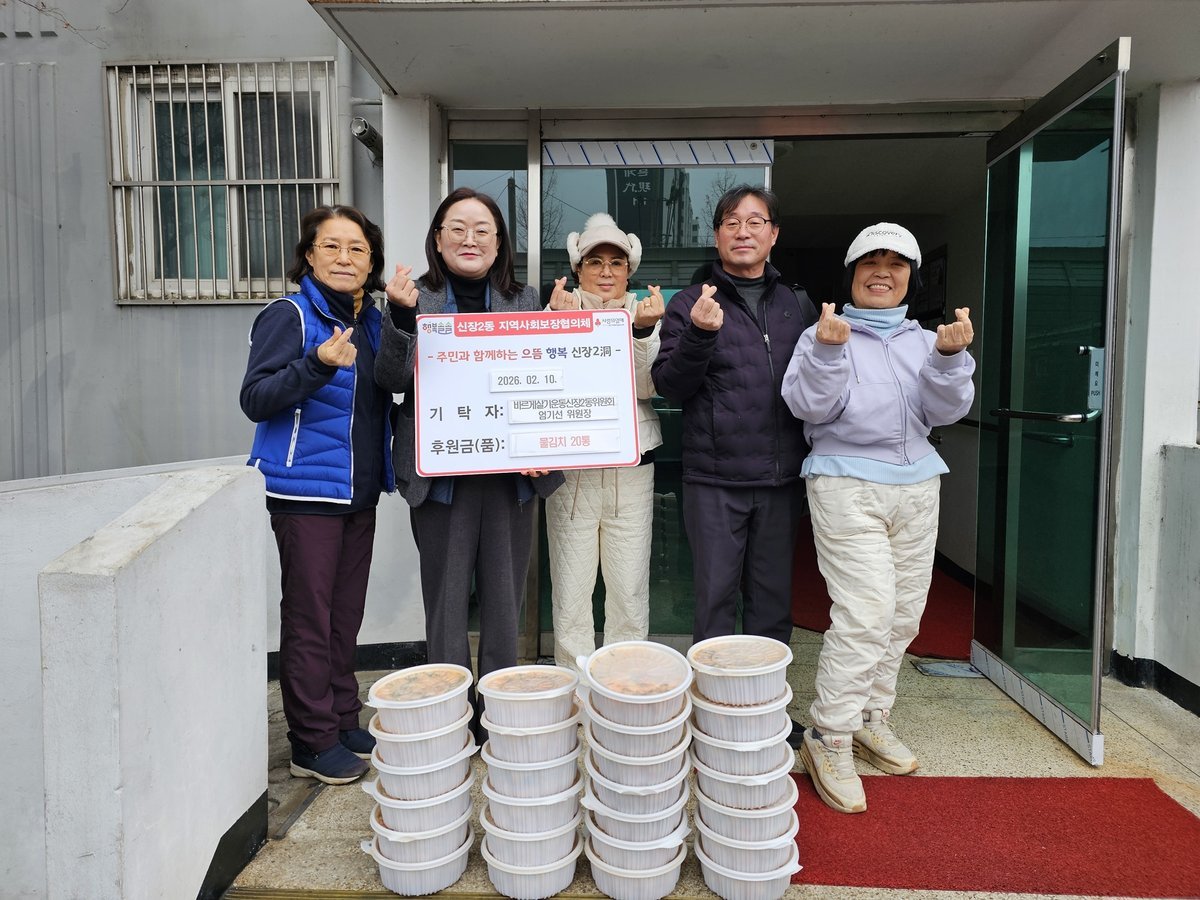 이은영 신장2동장은 “설을 맞아 어려운 이웃을 위해 따뜻한 정성을 나눠주신 데 깊이 감사드린다”며 “기탁해주신 물김치는 도움이 필요한 가정에 소중히 전달해, 이웃들이 따뜻한 겨울을 보낼 수 있도록 하겠다”고 전했다.