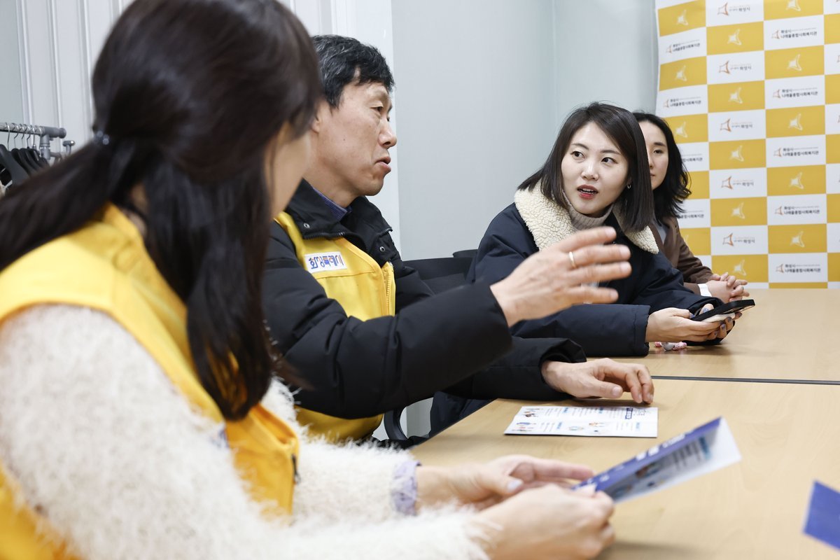 화성특례시민과 봉사자들이 1월 나래울복지관 회의실에서 그냥드림 공간 조성에 대한 의견을 말하고 있다