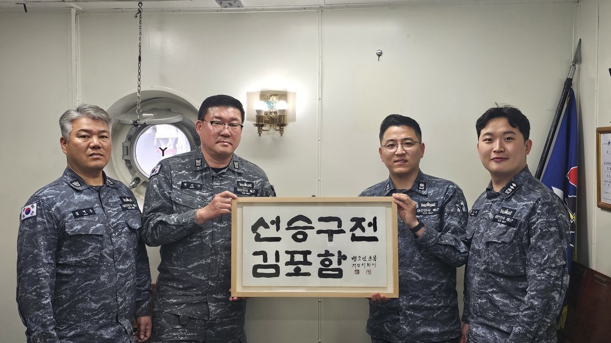 이번 전달된 함표어는 김포 지역을 대표하는 원로 서예가 지당 이화자 선생의 친필 작품으로, ‘선승구전 김포함’이라는 문구에 김포함의 굳건한 임무 수행과 필승의 의지를 담았다. 해당 작품은 액자로 제작돼 지난 9일 김포함에 전달됐다.