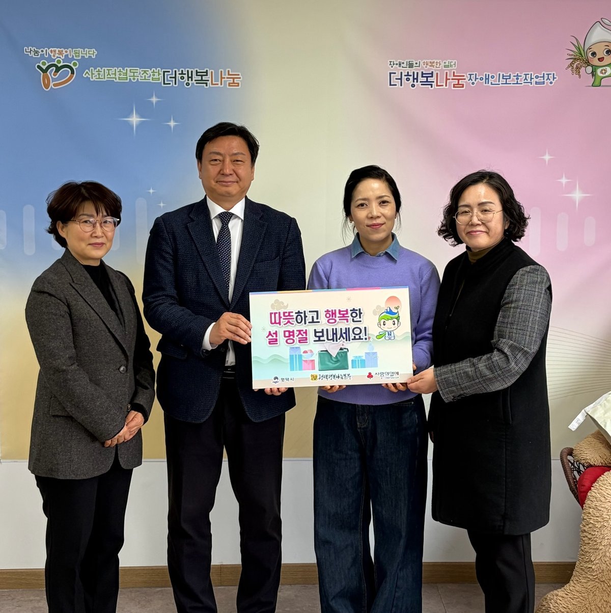 이번 방문에서는 직업재활시설인 더행복나눔장애인보호작업장을 찾아 시설 운영 전반을 이야기 나누고 관계자들과 간단한 휴식 시간을 가지며 명절 인사를 전했다.