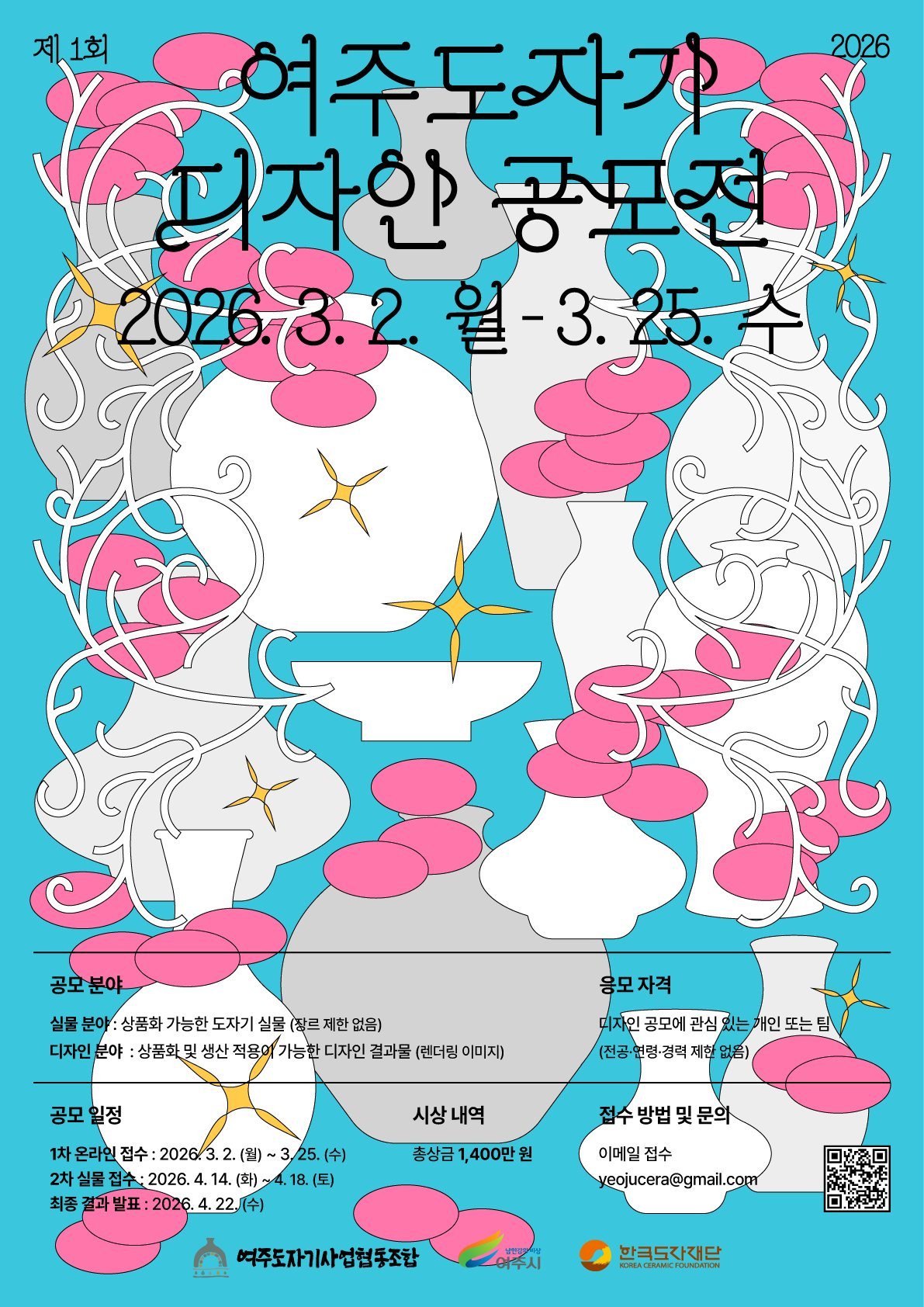 여주도자기사업협동조합이 주최하고 여주시와 한국도자재단이 후원하는 이번 공모전은 오는 3월 2일부터 3월 25일까지 접수를 진행한다.