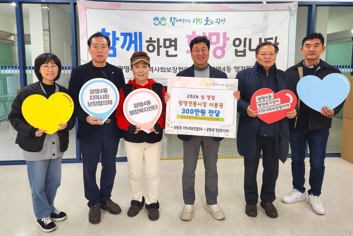 [금요저널] 광명시 광명4동 지역사회보장협의체는 11일 설 명절을 맞아 관내 저소득 취약계층 50가구에 총 300만원 상당의 광명전통시장 이용권을 전달했다.