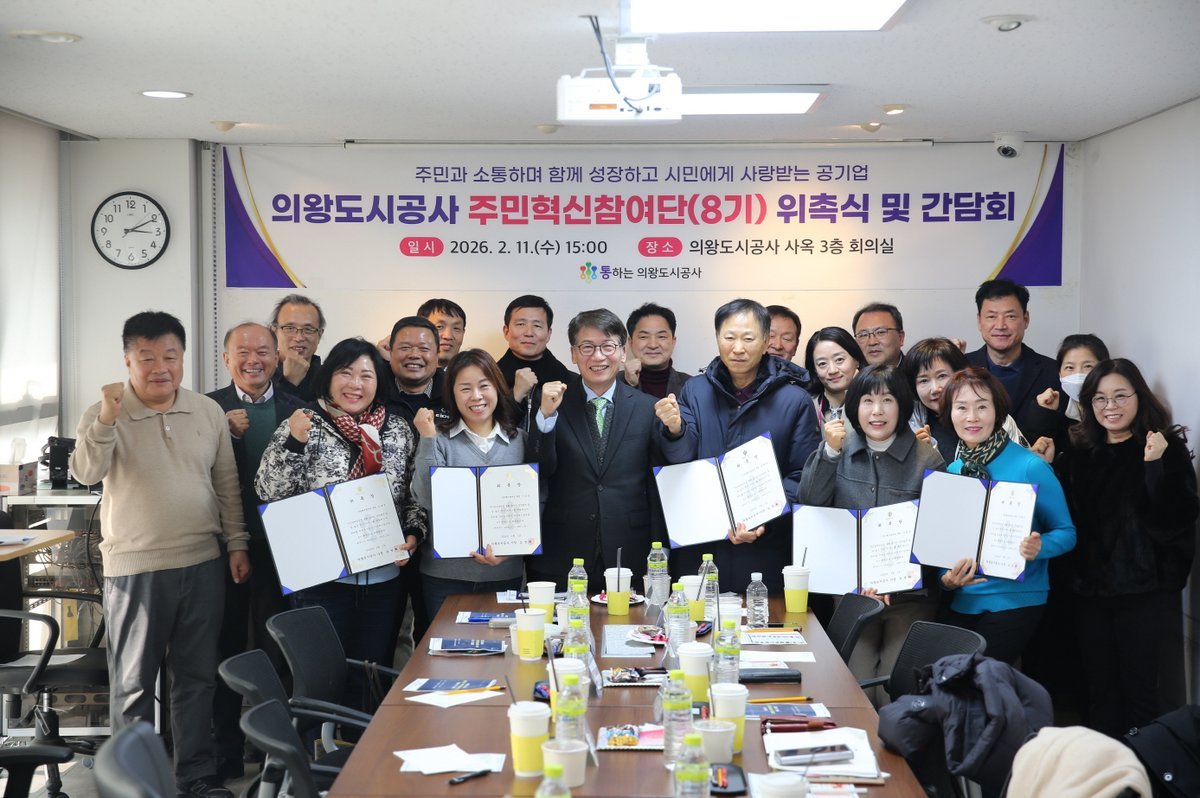 [금요저널] 의왕도시공사가 지역주민과 고객들의 경영 참여 확대와 소통 강화를 위해 2월 11일 본사 3층 회의실에서 ‘2026년 주민혁신참여단 8기 위촉식 및 간담회’를 개최했다.