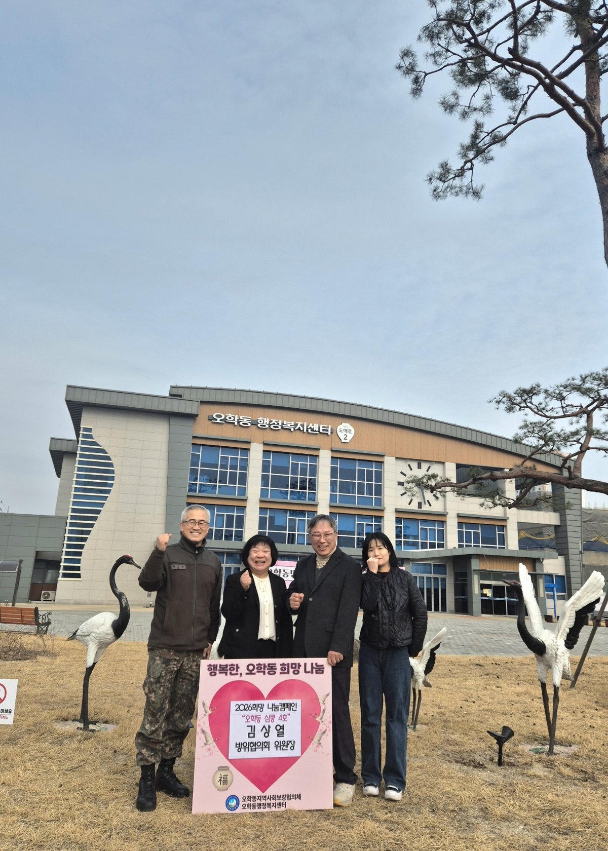 김병선 오학동장은 "김상열 방위협의회 위원장님께 진심으로 감사를 표한다. 방위협의회와 지역사회보장협의체의 협력이 오학동을 더욱 따뜻한 공동체로 만들어 가는 원동력이 될 것이며 앞으로도 지속적인 나눔 활동을 기대하겠다"고 감사의 마음을 전했다.