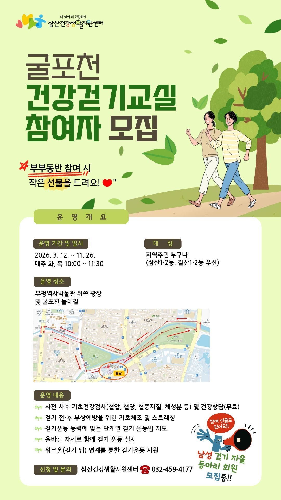 부평구보건소 삼산건강생활지원센터, 주민과 함께 만드는 '삼산동 걷기 좋은 길'코스 발굴 및 신체활동 프로그램 참여자 모집 (부평구 제공)