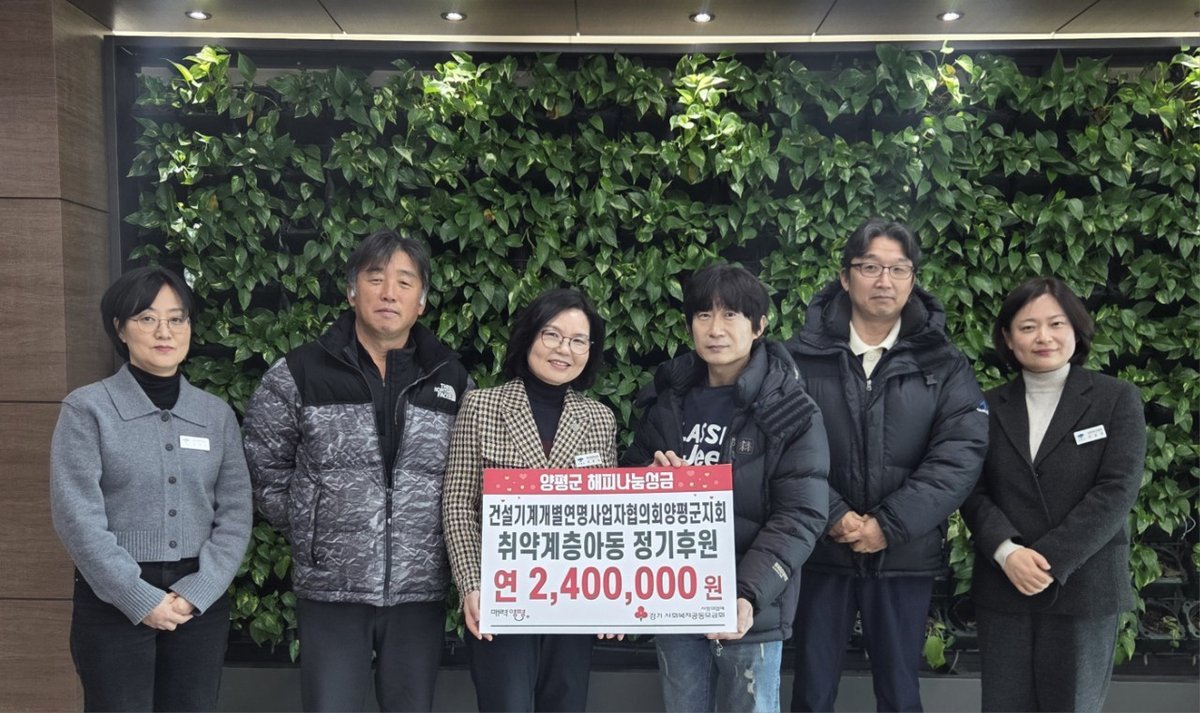 한편, 건설기계개별연명사업자협의회 양평군지회는 청소년 장학사업을 비롯해 ‘행복의 집 희망릴레이’ 집수리 지원 사업과 ‘행복 나눔 PLUS 4호 장바구니’ 어르신 장보기 동행 사업 등 다양한 사회 공헌 활동을 펼치며 아동과 노인을 아우르는 맞춤형 나눔을 이어가고 있다.