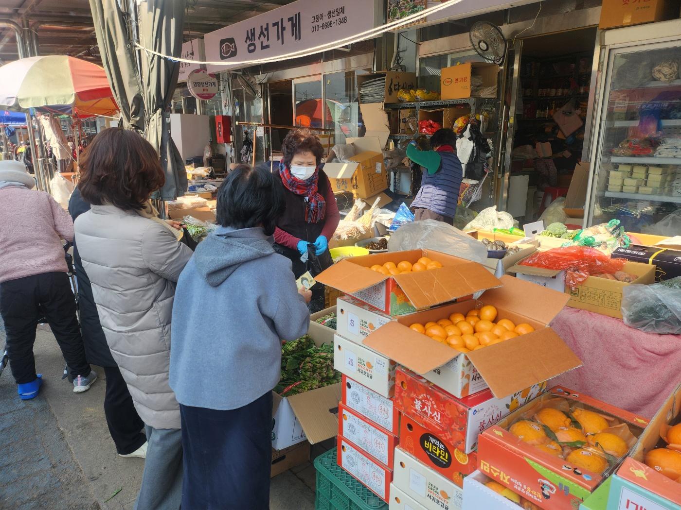 참여한 직원들은 전통시장을 직접 방문하여 제수용품과 먹거리 등을 구매하며 지역경제 살리기 운동에 동참하는 한편, 공직자로서의 청렴한 소비문화 실천과 건전한 명절문화 조성의 의미도 함께 되새겼다.