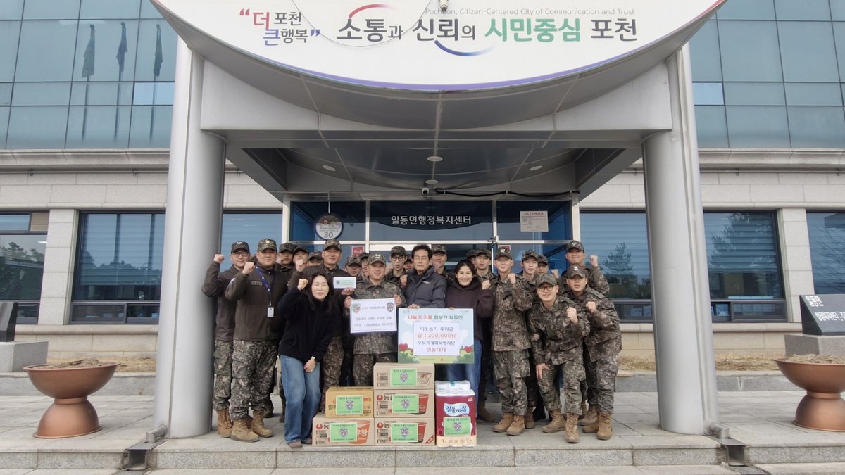 이경재 일동면장은 “설 명절을 앞두고 어려운 이웃을 위해 따뜻한 나눔을 실천해 주신 천둥대대 장병 여러분께 깊이 감사드린다”며 “기탁해 주신 성금은 도움이 필요한 가정에 소중히 전달해 이웃들이 보다 따뜻하고 풍요로운 명절을 보낼 수 있도록 하겠다”고 밝혔다.