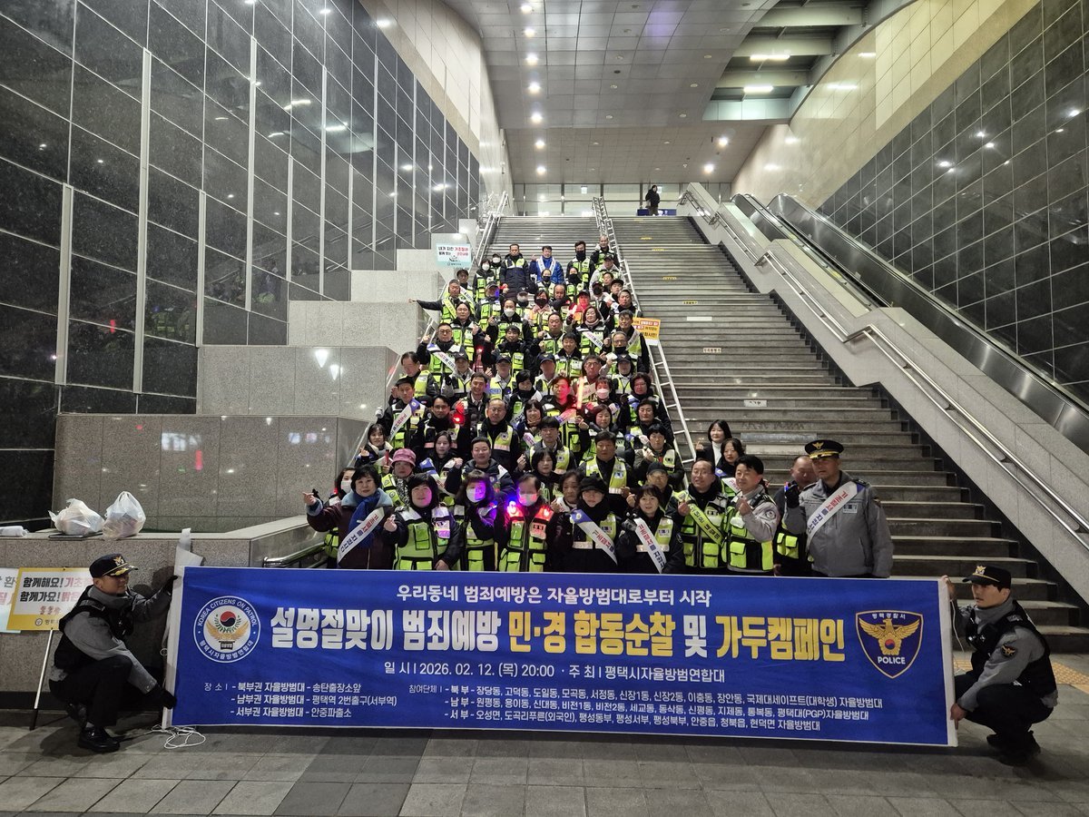[금요저널] 평택시는 다가오는 설 명절을 맞아 지난 12일 저녁, 지역 주민들의 안전한 연휴를 보장하고 범죄 예방 분위기를 조성하기 위해 자율방범연합대 및 자율방범대원들과 함께 설 맞이 합동순찰을 실시했다.