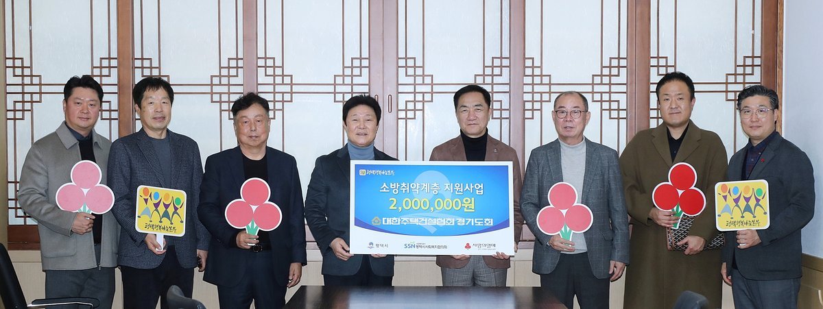 [금요저널] 지난 12일 대한주택건설협회 경기도회는 평택시청 대외협력실에서 소방취약계층 안전용품 지원을 위해 평택행복나눔본부에 성금 200만원을 전달했다.