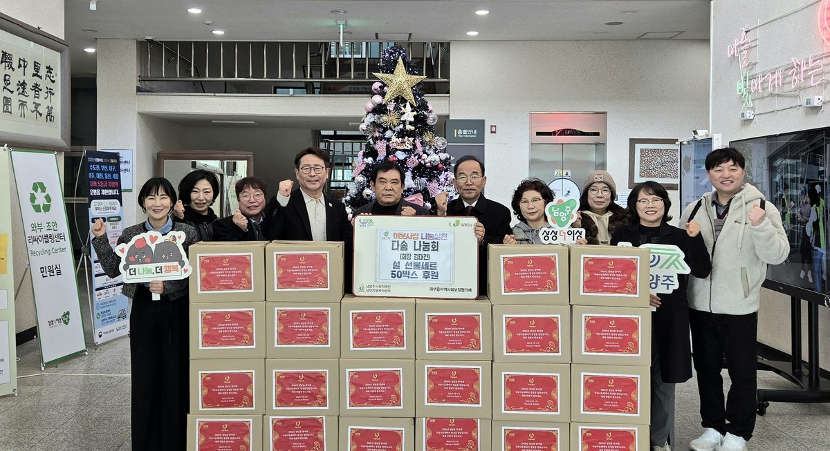 [금요저널] 남양주시는 지난 12일 다솜나눔회가 설 명절을 맞아 지역 내 취약계층이 따뜻한 명절을 보낼 수 있도록 물품 꾸러미 50상자를 와부읍 지역사회보장협의체에 기탁했다고 13일 밝혔다.
