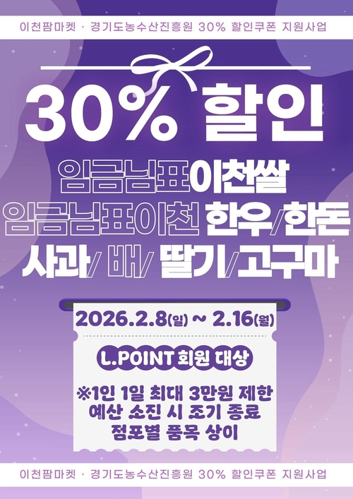 이와 함께 지역 내 각 농협 하나로마트에서도 농수산진흥원 30% 할인 지원사업을 통해 이천쌀을 할인 적용해 판매하고 있다.