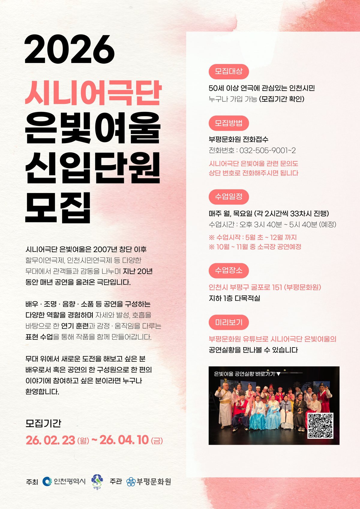 부평문화원 시니어극단 '은빛여울'신규단원 모집 (부평구 제공)