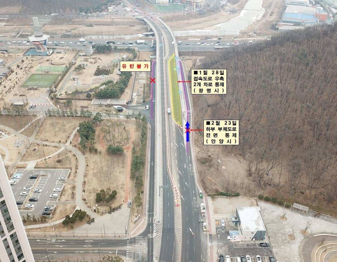 광명시, 23일 오전 9시부터 '충훈대교 하부도로 전면 통행 제한'안내 (광명시 제공)