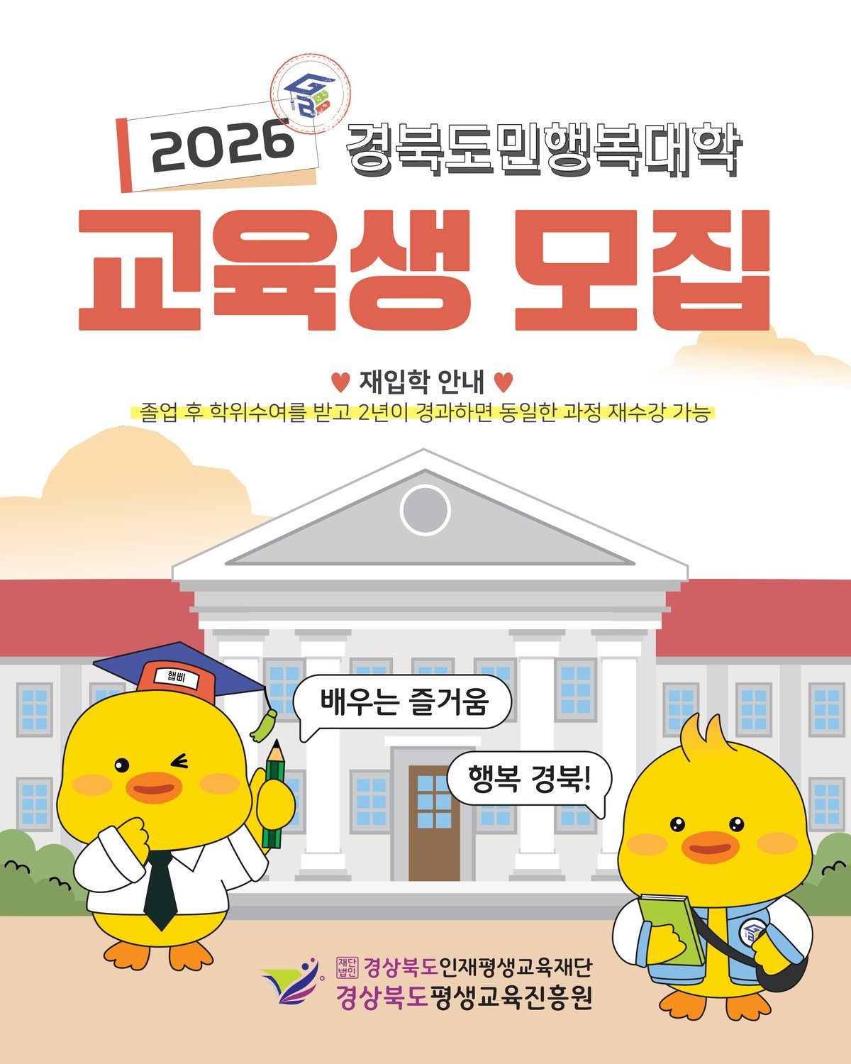 [금요저널] 상주시는 시민들에게 체계적이고 수준 높은 평생학습 기회를 제공하기 위해 ‘2026학년도 경북도민행복대학 상주캠퍼스’신입생을 모집한다고 밝혔다.