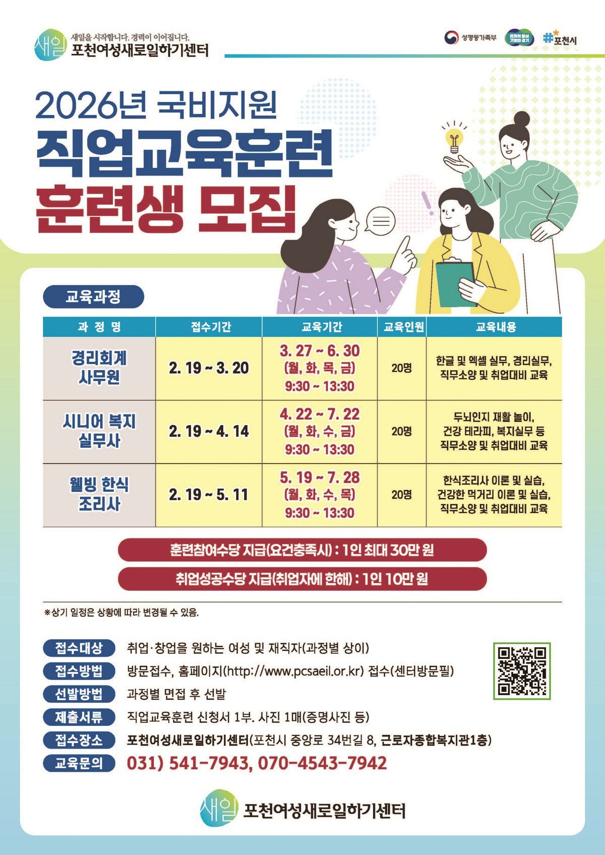 [금요저널] 포천여성새로일하기센터는 취업과 창업을 희망하는 여성을 대상으로 ‘2026년 직업교육훈련생’을 모집한다.