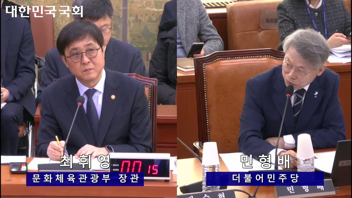 이날 법안 대체토론에 나선 민 의원은 "사업 심의 기구가 4년 가까이 구성조차 안 된 것은 윤석열 정권의 문화정책 테러"며 "이재명 정권 출범 이후 3년 8개월 만의 위원장 임명 등 묵은 과제가 해결된 만큼, 잃어버린 시간을 만회하고 지체 없이 사업을 본궤도에 올려야 한다"고 강조했다.