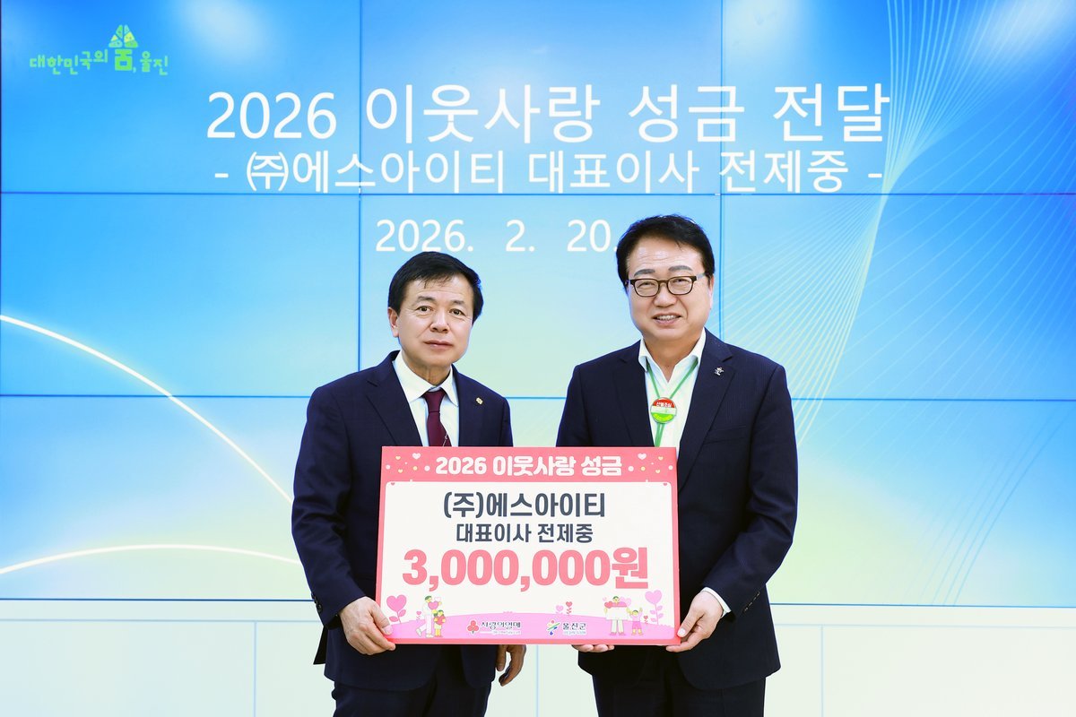 [금요저널] 울진군은 지난 2월 20일 ㈜에스아이티 전제중 대표이사로부터 성금 300만원을 전달받았다.