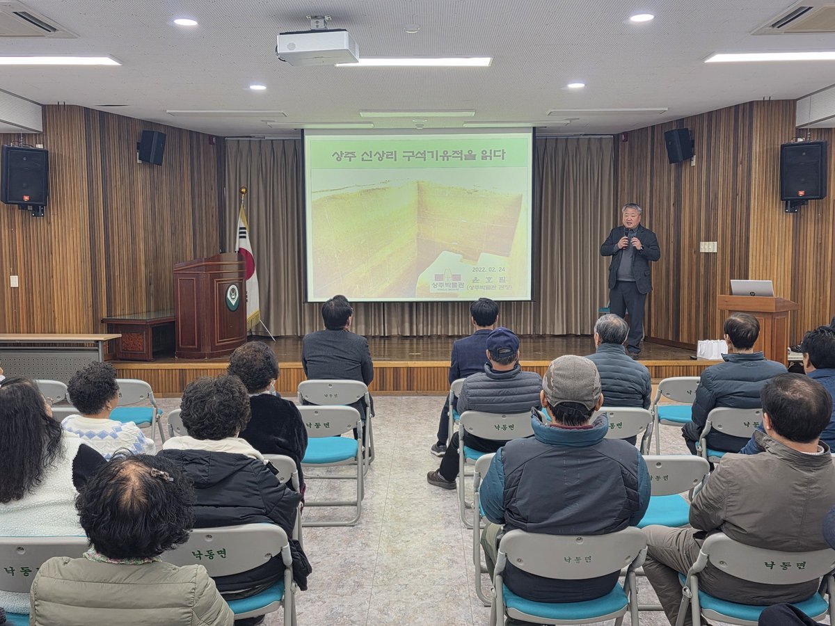 [금요저널] 상주시 낙동면은 2월 24일 낙동면민회관 2층에서 신상리 구석기 유적 설명회를 개최했다.